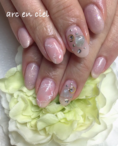 お客様写真 ローズクォーツ 2016.06.24 記事のタイトルとURLをコピーする 今朝は一時どしゃ降りで大変でしたがまた今大雨洪水警報が発令 自転車でのお帰りが少し心配 今晩のお客様K様のネイルです ピンクベースですが なんとなく海のイメージ ローズクォーツもさりげなく入って 上品な仕上がりになりました 大理石風マーブル 前の記事 パシフィックオパールin ホワイト 次の記事